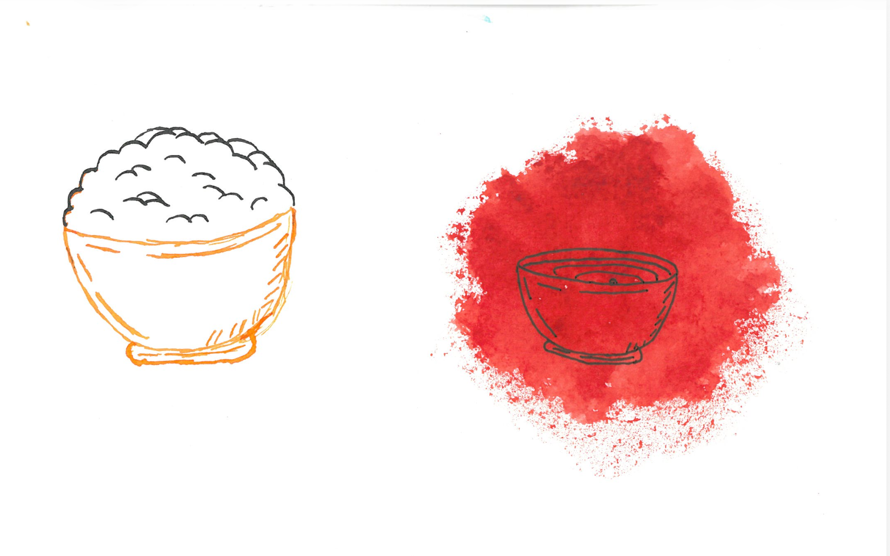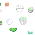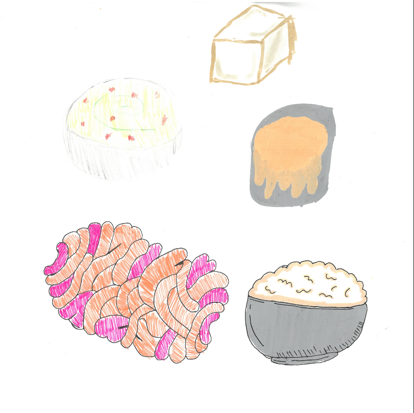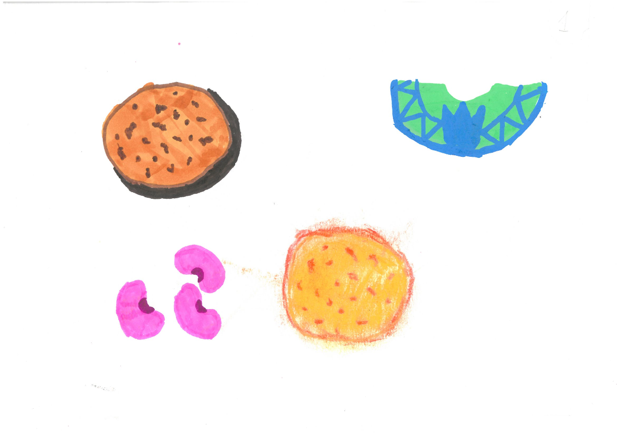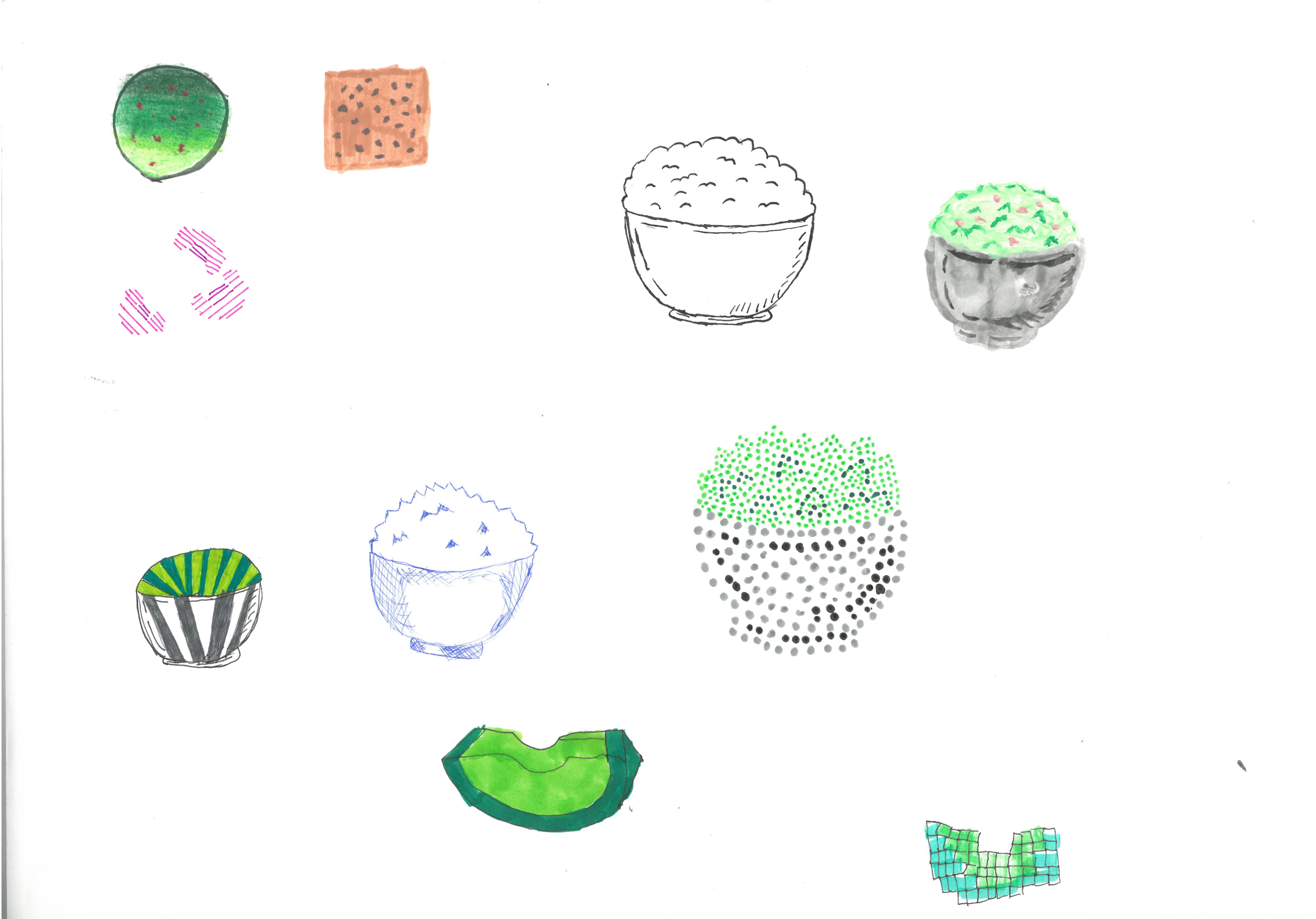De volgende stap was om verschillende schetsen te maken van de ingrediënten met verschillende materialen. Ik heb er uiteindelijk voor gekozen om waterverf te gebruiken. Na het kiezen van het material ben ik begonnen met het digitaliseren van de ingrediënten in Illustrator. Na het maken van alle ingrediënten in Illustrator heb ik ook de eindproducten gemaakt.